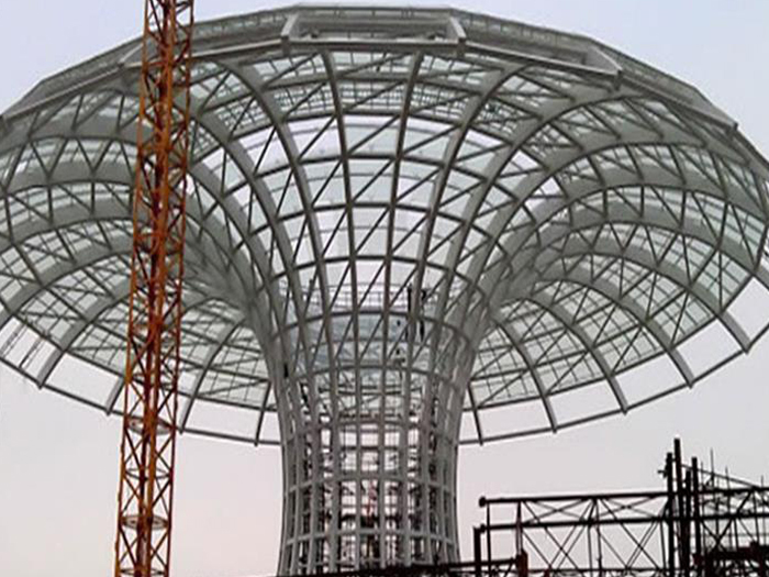 二、球形网架结构因其结构新颖,受力合理,自重轻、用钢量低等优点。如大型体育场馆球形迪庆螺栓球网架、公共场馆球形网架、电厂迪庆螺栓球网架、水泥工业球形网架、仓储物流球形网架、迪庆干煤棚工业球形网架、迪庆收费站迪庆加油站球形网架、展览中心、影剧院、商场、航站楼、候车厅、工厂迪庆车间、仓库、电视塔等球形螺栓球节点网架。国内球形网架结构主要分为:迪庆焊接球节点网架及螺栓球节点网架两种。螺栓球节点网架其构件工厂内加工量较大,现场安装便捷,适用于现场工期紧,迪庆施工条件、用电量受制约,网架形状复杂、迪庆杆件定位困难的异形结构。螺栓球节点球形网架系统基本由迪庆杆件、螺栓球、支撑支座等组成。按照节点形式可分为交叉迪庆桁架体系、四角锥体系、三角锥体系等。支撑方式多为固定支座支撑。对于大面积、大跨度及有特殊受力或伸缩要求的网架结构可采用橡胶支座、滑移支座、球铰支座等支撑形式,以满足结构自身的受力稳定、均衡,便于内力释放等设计要求。